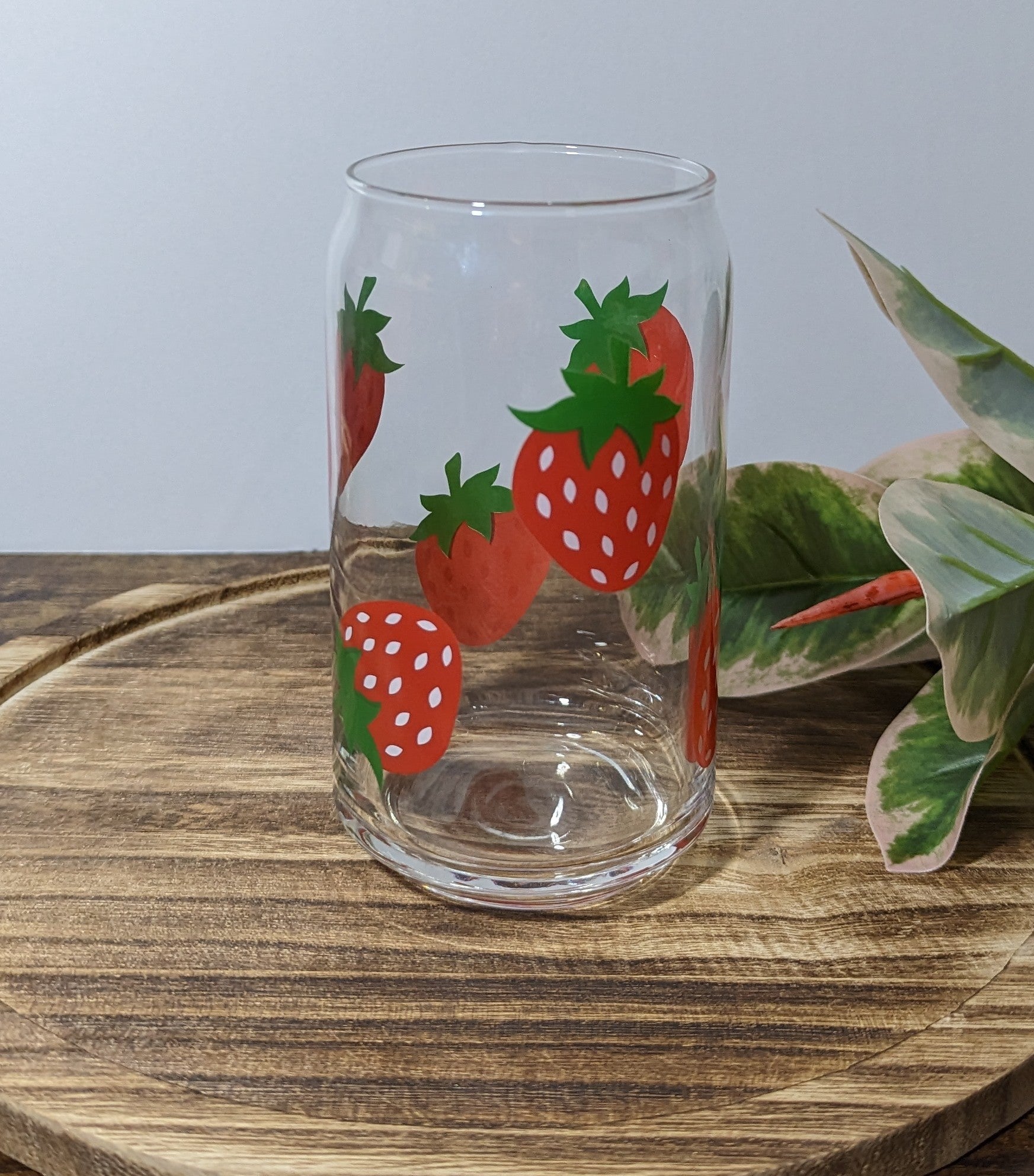 Strawberry 16 oz Can Glass Cup (Dishwasher Safe)